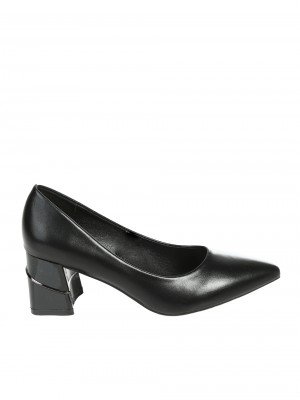 Pantofi eleganti dama cu toc, din piele ecologica Disponibili in culoarea neagra, cu pietre decorative. Partea interioară este realizată din piele ecologică. Înălţimea tocului este de 3 cm.