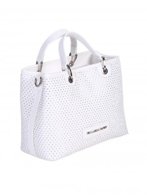 Geanta de dama din piele ecologica si material textil.Disponibil în negru, cu mâner lung reglabil. Geanta are un singur compartiment, cu doua buzunare interioare.