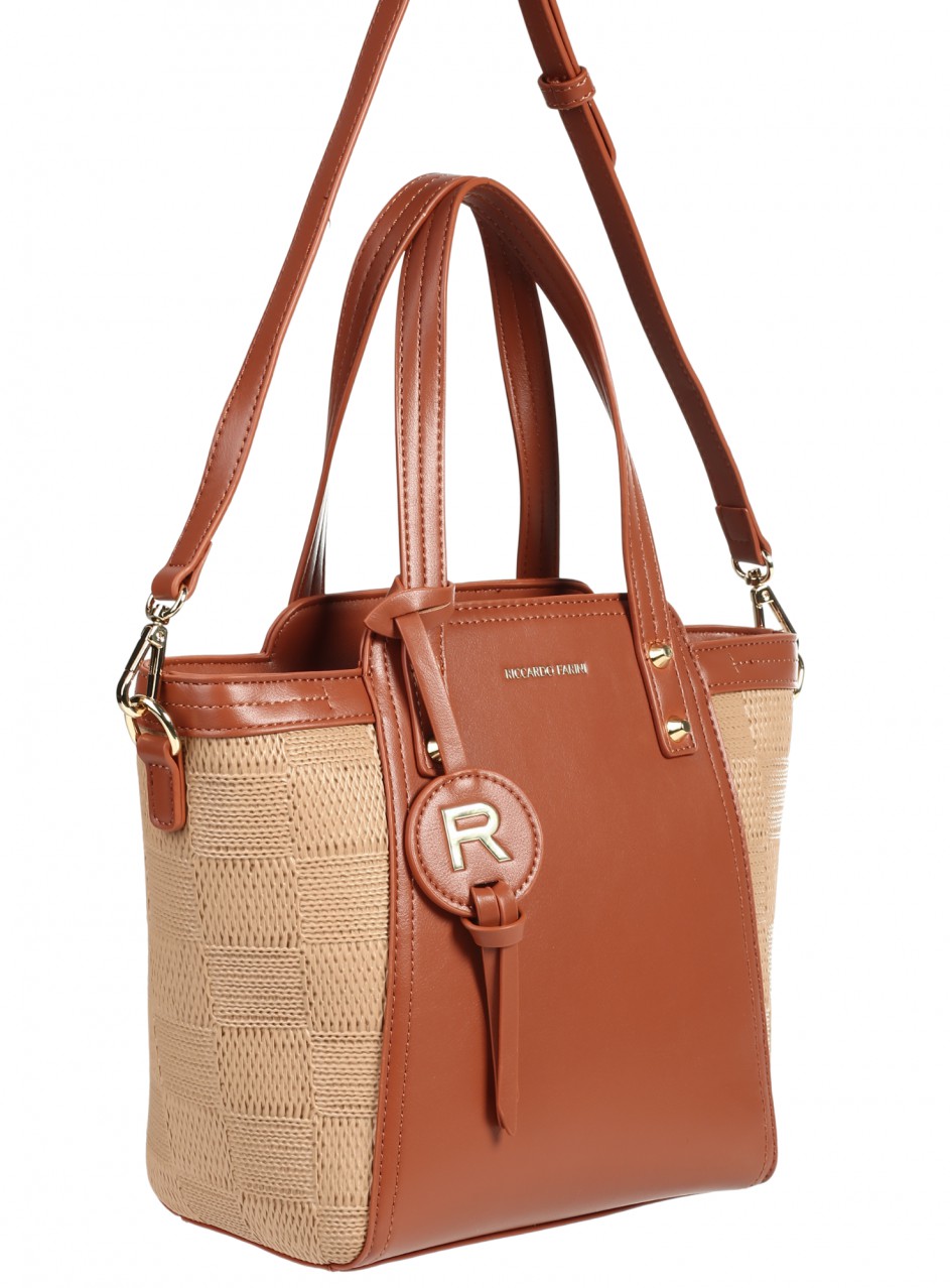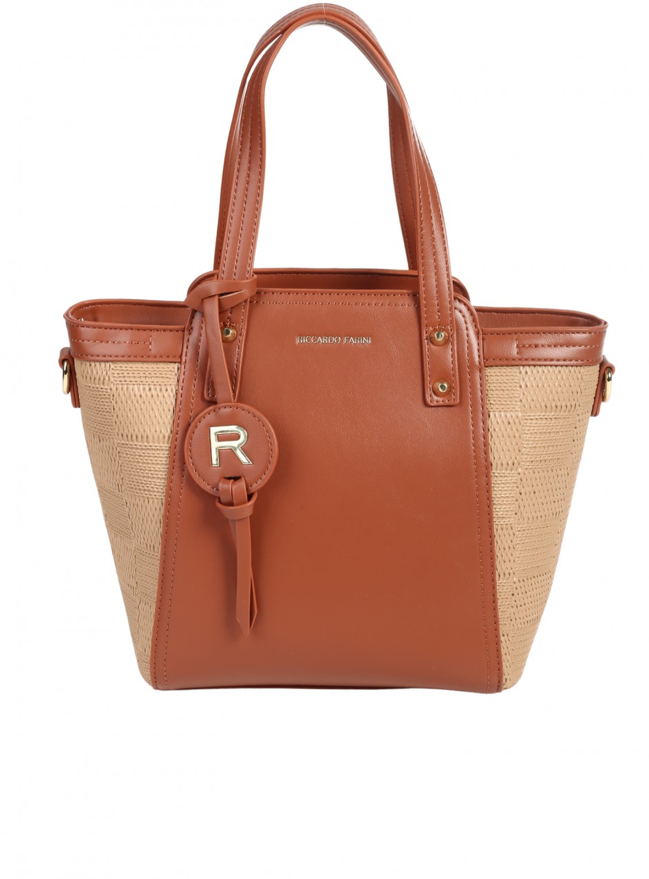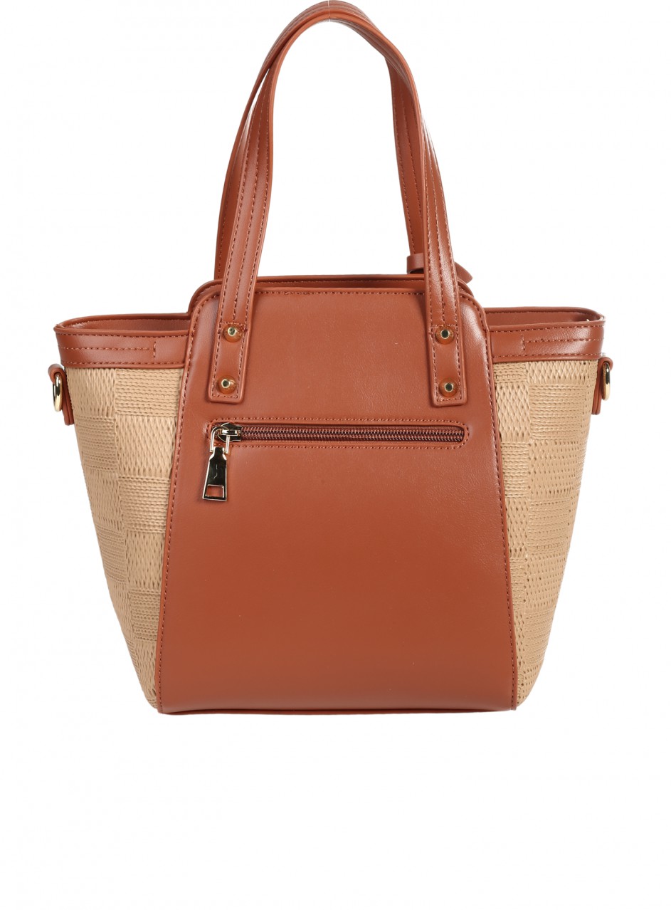 Geantă de damă din piele ecologică. Disponibilă în culoarea cămilă, cu mâner lung reglabil. Geanta are un compartiment, cu trei buzunare interne și unul extern.
