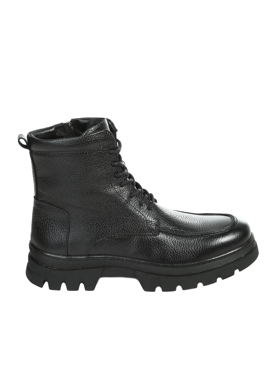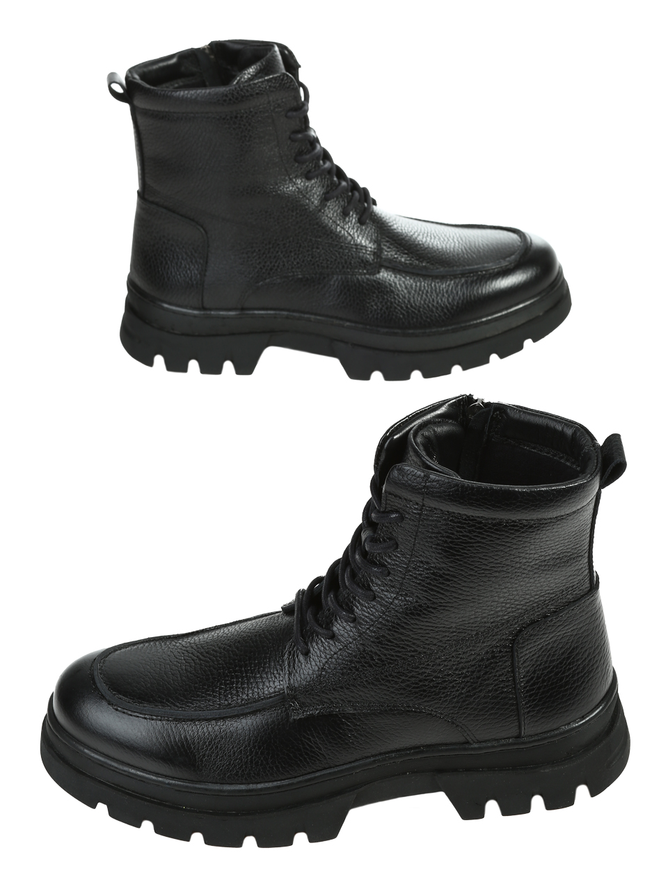 Ghete casual bărbătești din piele naturală. Disponibile în culoarea neagră. Partea interioară este confecționată din piele naturală și material textil.