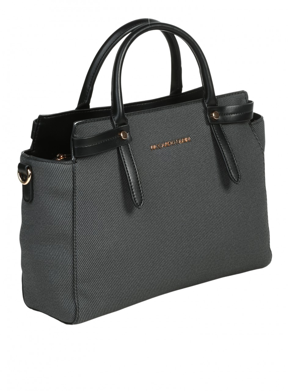 Geantă de damă din material textil. Disponibilă în culoarea neagră cu mâner lung atașat. Geanta are un compartiment, cu un buzunar interior.