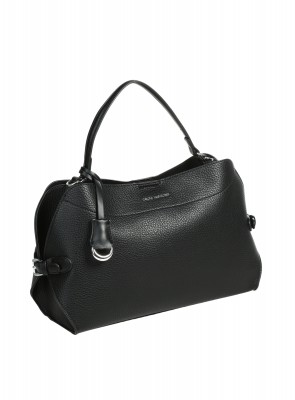 Geantă de damă din material textil. Disponibilă în culoarea neagră cu mâner lung atașat. Geanta are un compartiment, cu un buzunar interior.