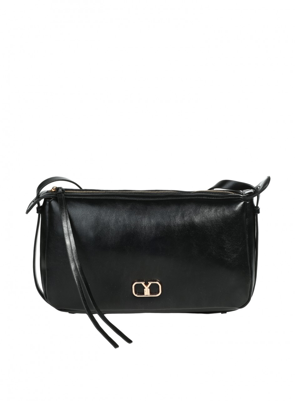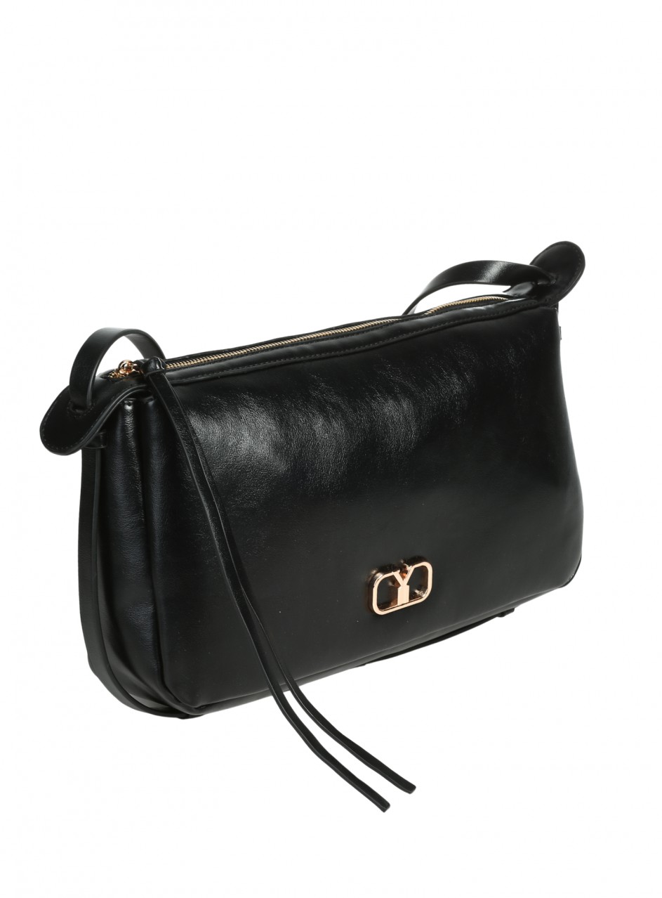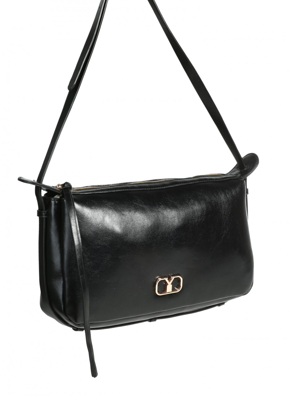 Geantă de damă din piele ecologică. Disponibilă pe negru. Geanta are un compartiment și două buzunare interioare.