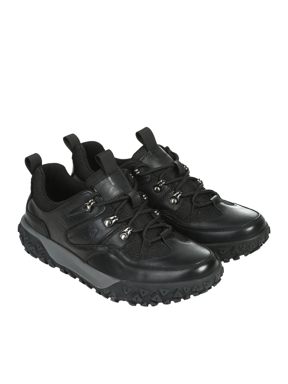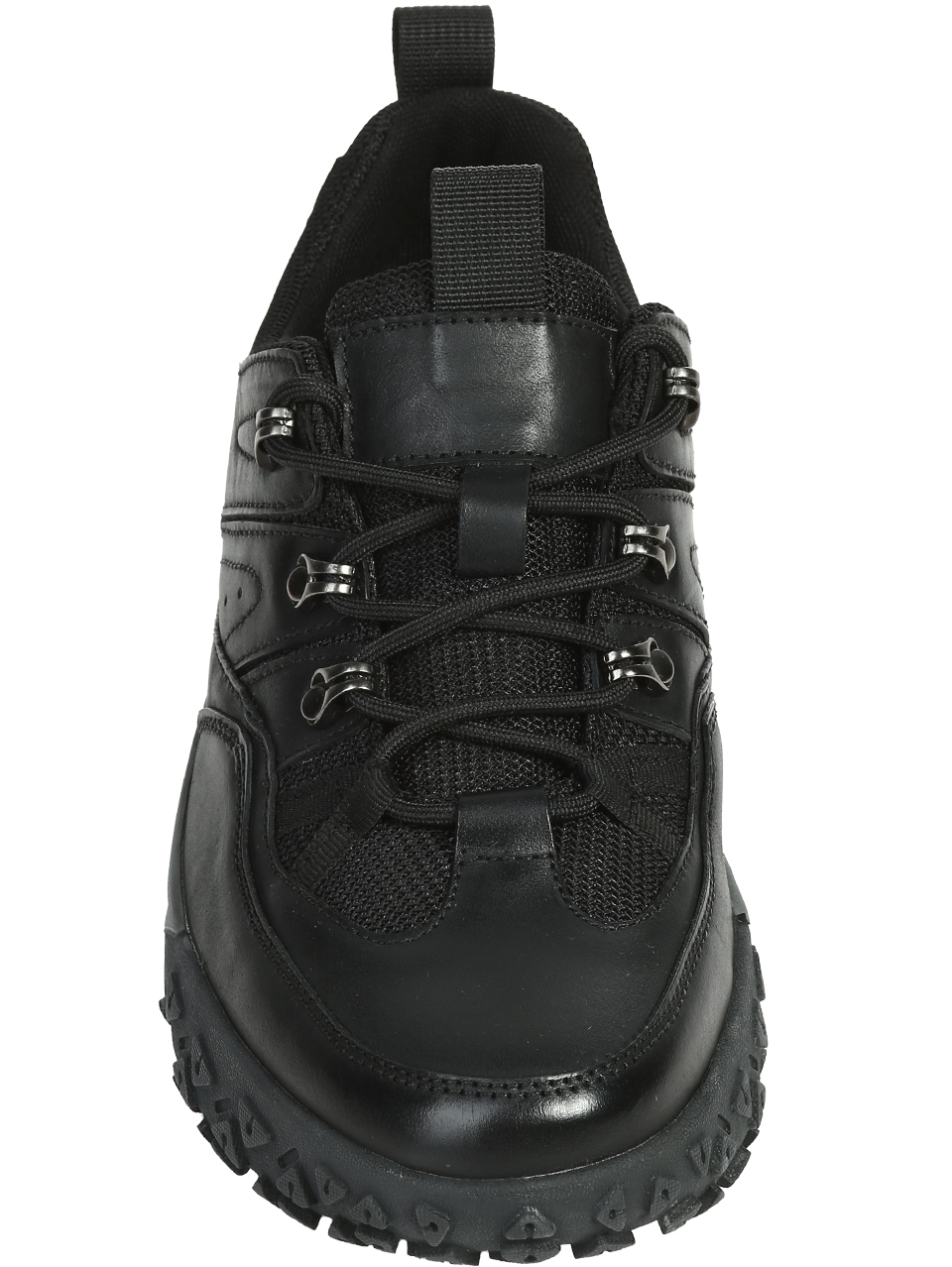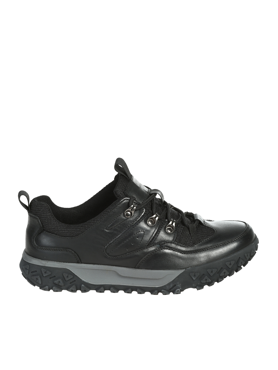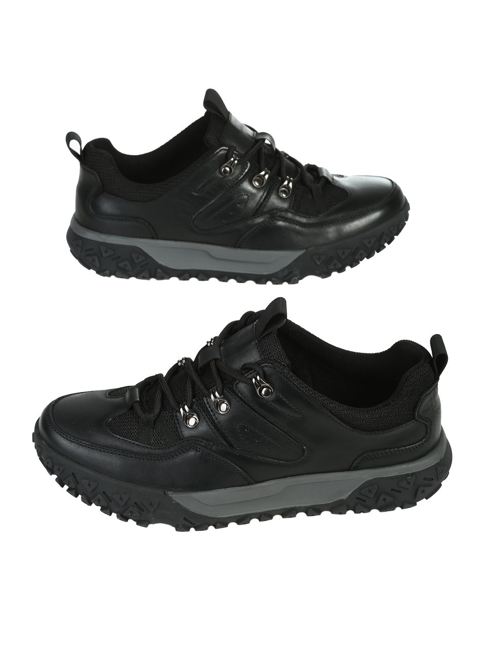 Pantofi bărbătești din piele naturală și material textil. Disponibili în negru. Partea interioară este confecționată din piele naturală și material textil.