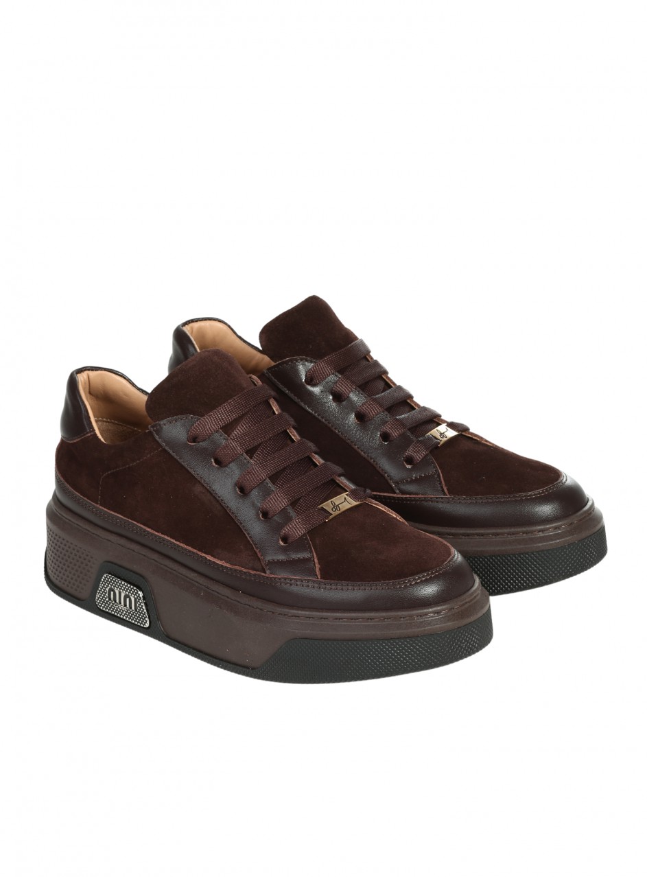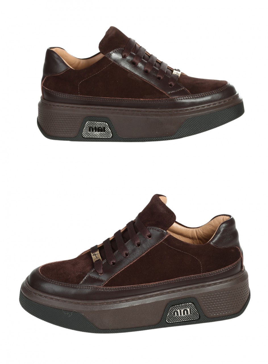 Pantofi casual de damă, confecționați din piele naturală și piele întoarsă. Disponibili în culoarea maro. Partea interioară este confecționată din piele naturală.