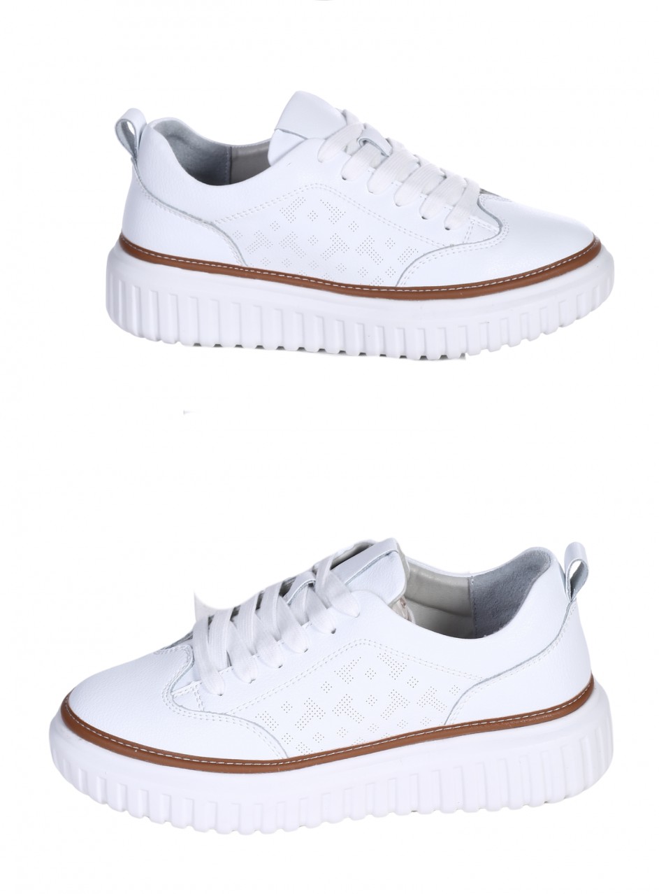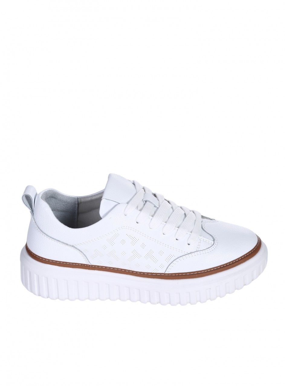 Pantofi casual de damă din piele naturală. Disponibili în culoarea albă. Partea interioară este confecționată din piele naturală.