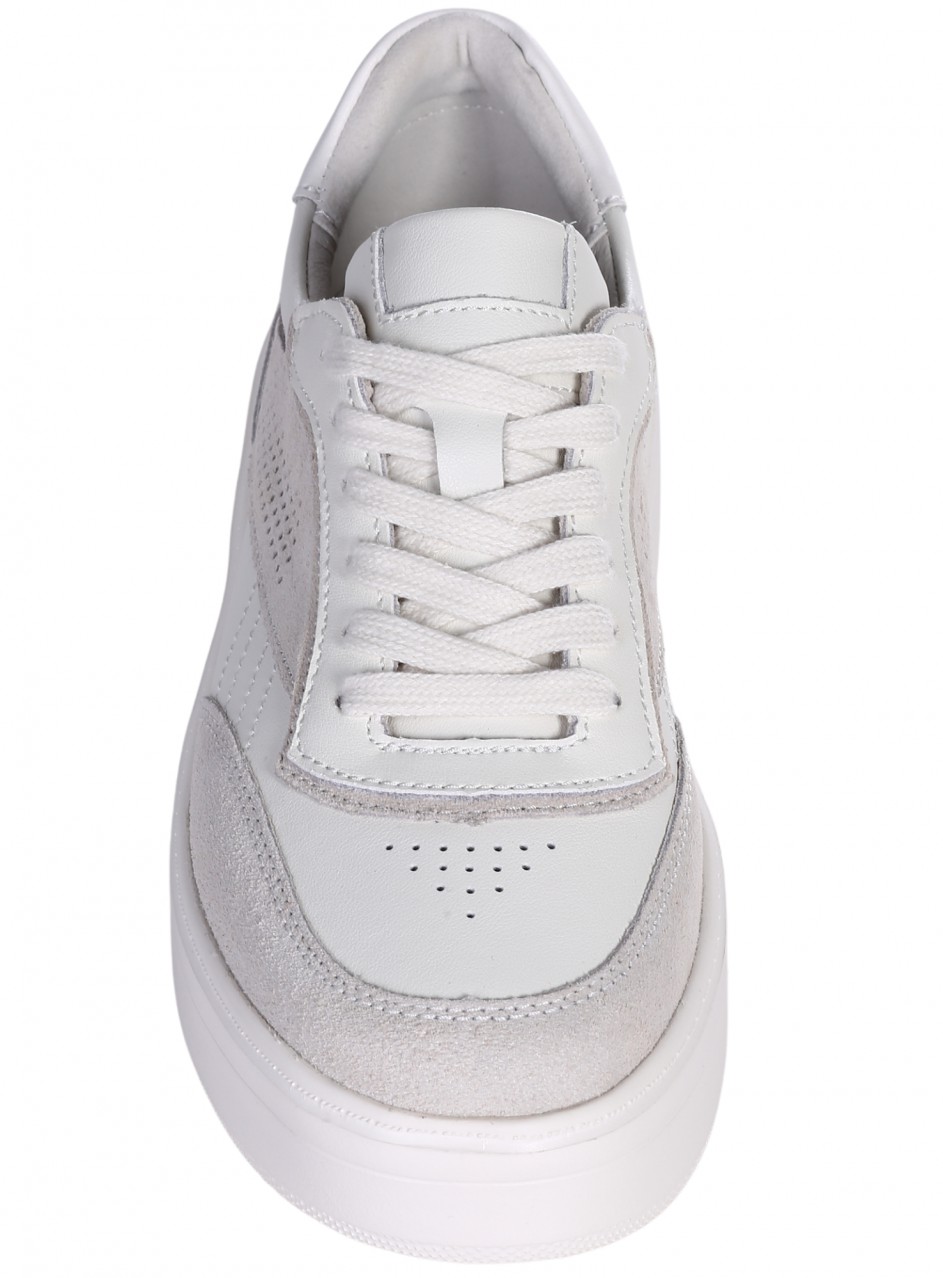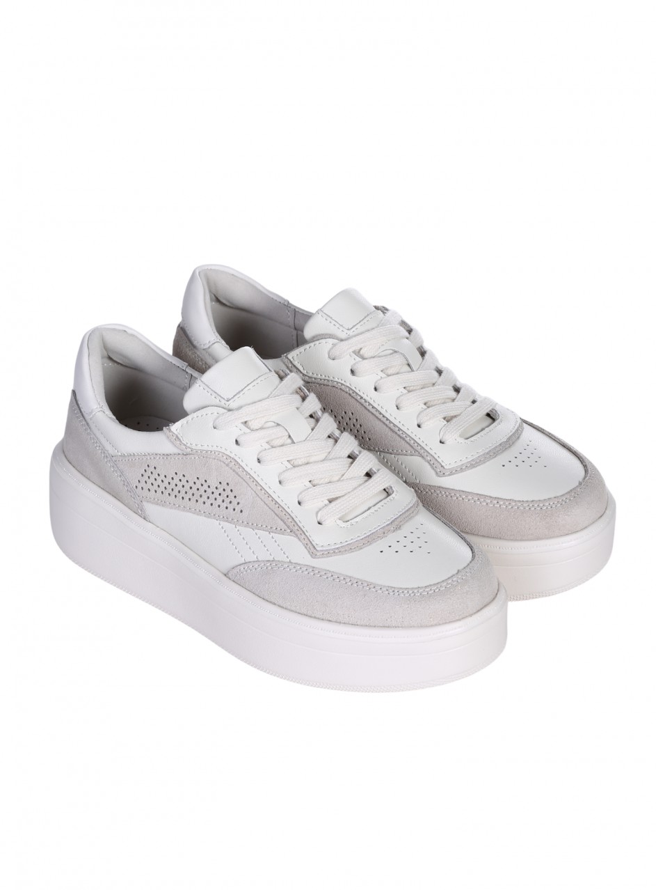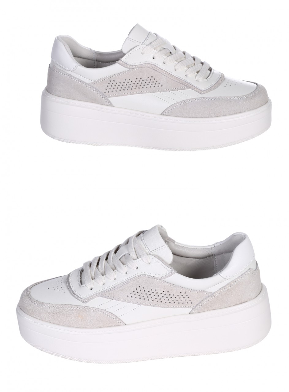 Pantofi casual pentru femei cu platformă și perforații, confecționați din piele naturală și piele întoarsă. Disponibili în culoarea bej. Partea interioară este confecționată din piele naturală.