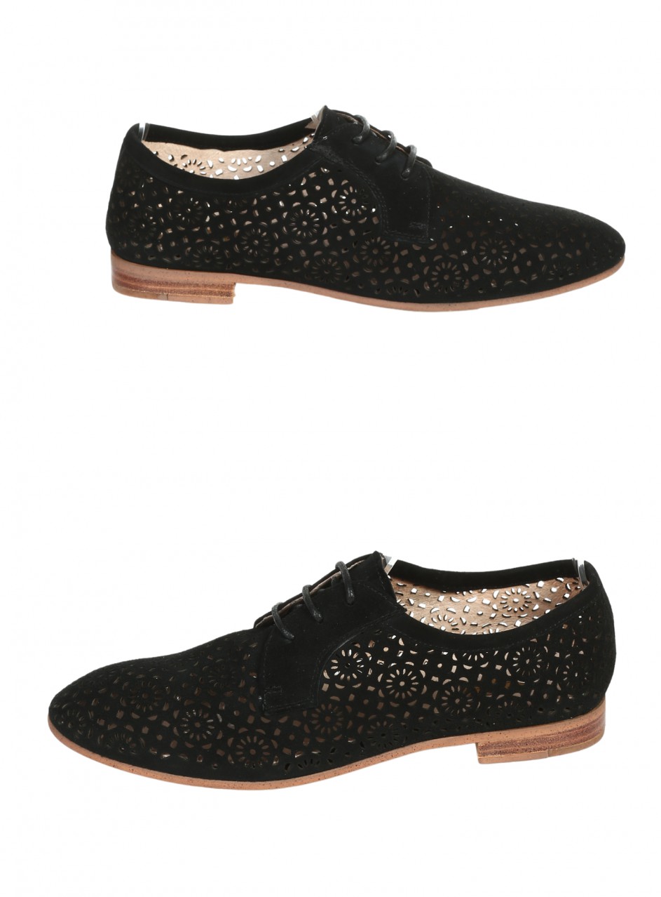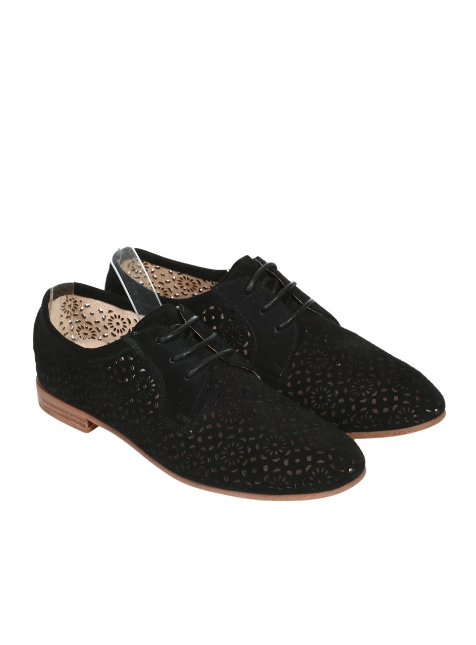 Pantofi casual de damă, confecționați din piele naturală și piele întoarsă. Disponibili în culoarea maro. Partea interioară este confecționată din piele naturală.