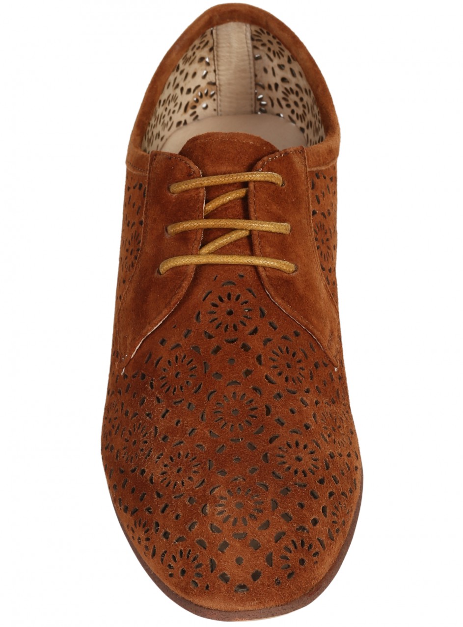 Pantofi casual de damă, confecționați din piele naturală și piele întoarsă. Disponibili în culoarea maro. Partea interioară este confecționată din piele naturală.