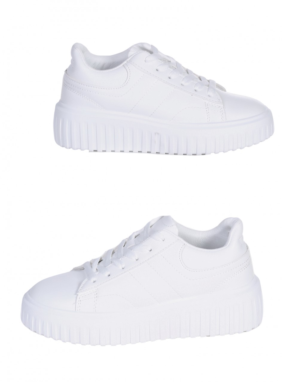 Pantofi casual de damă confecționați din piele ecologică și material textil. Disponibili în culoarea bej. Partea interioară este confecționată din material textil.