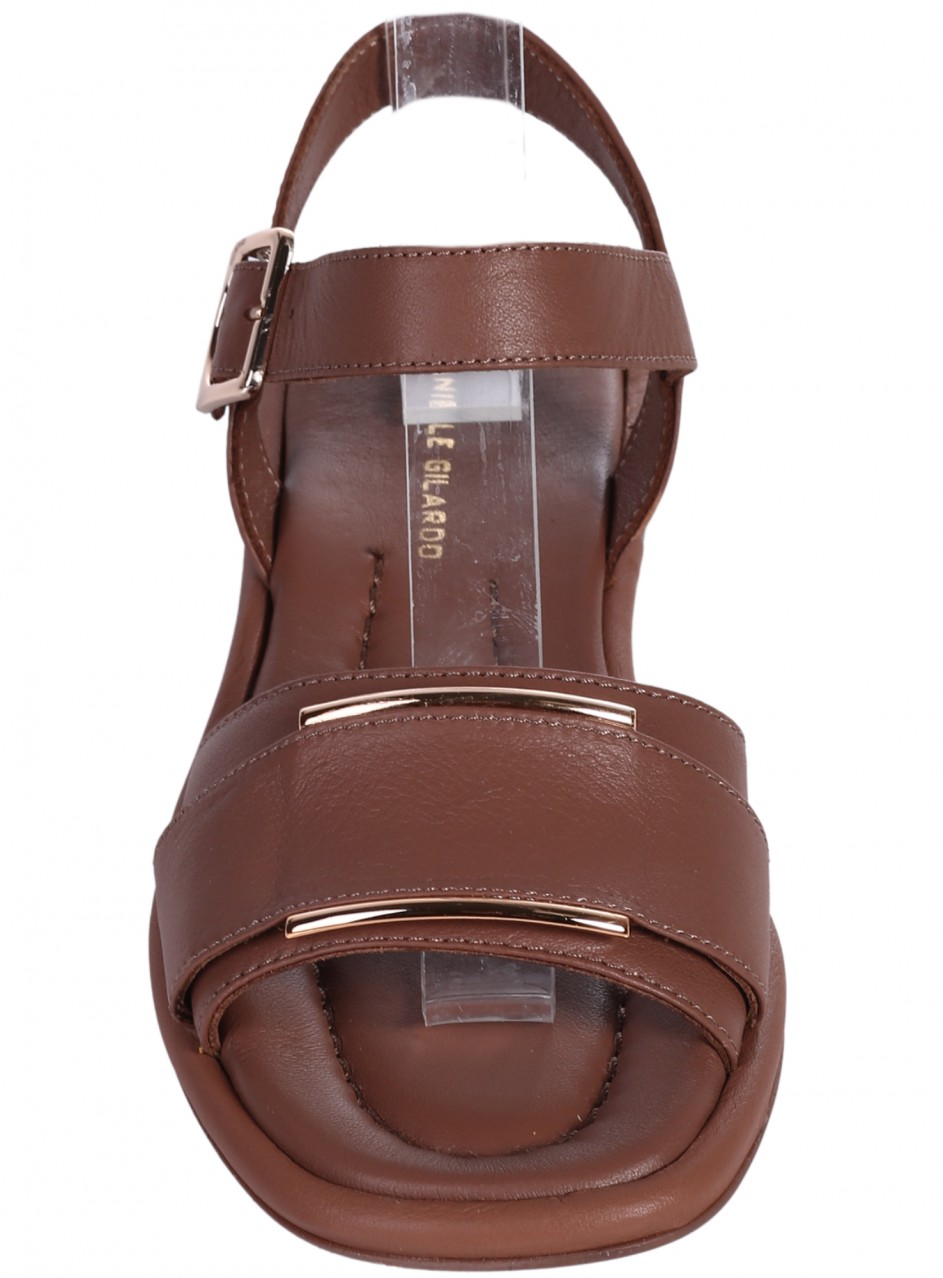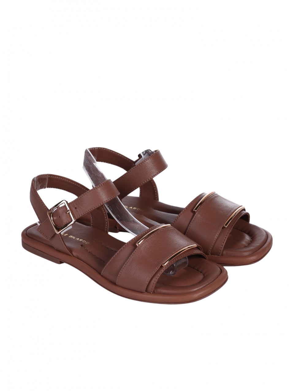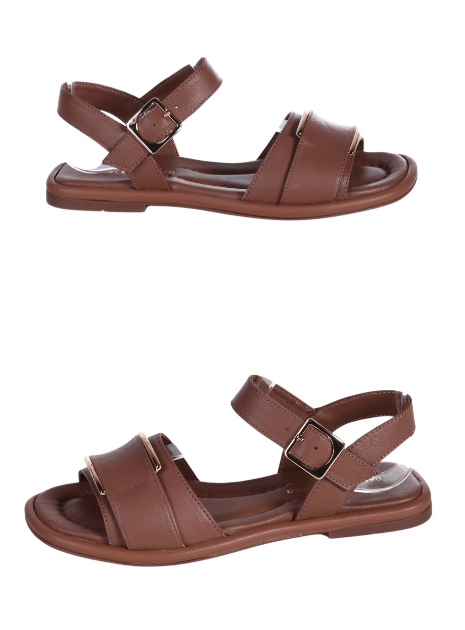 Sandale casual de damă din piele naturală. Disponibile în culoarea albă, cu ornament metalic decorativ. Partea interioară este confecționată din piele naturală.