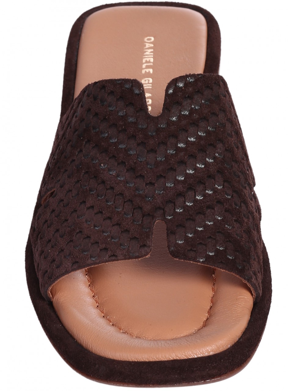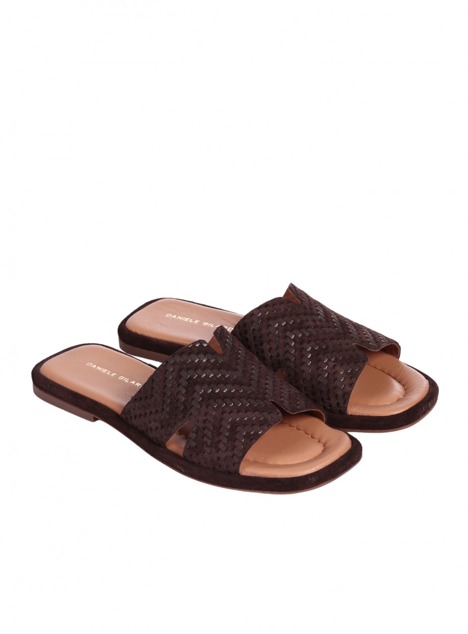 Papuci casual de dama din piele intoarsa naturala. Sunt disponibile in culoarea maro. Partea interioară este din piele naturală.