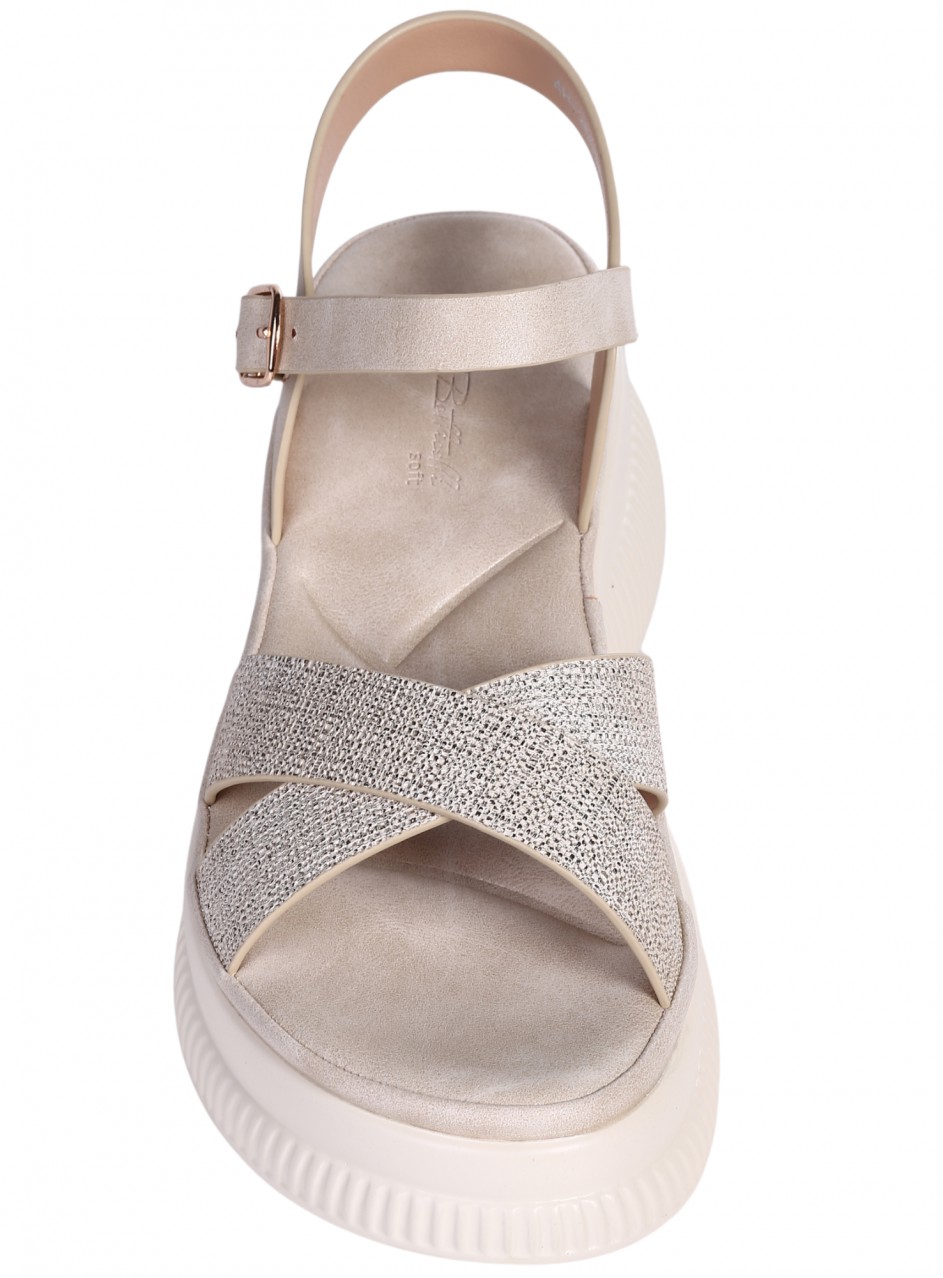 Sandale casual pentru femei, confecționate din piele ecologică. Disponibile în culoarea bej. Partea interioară este confecționată din piele ecologică, cu o talpă confortabilă.