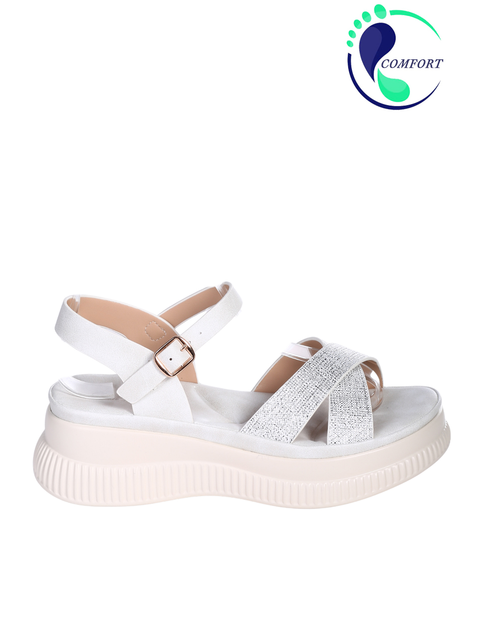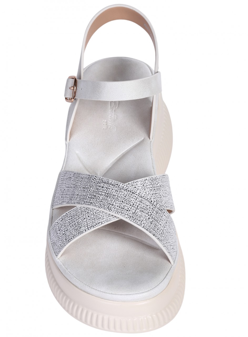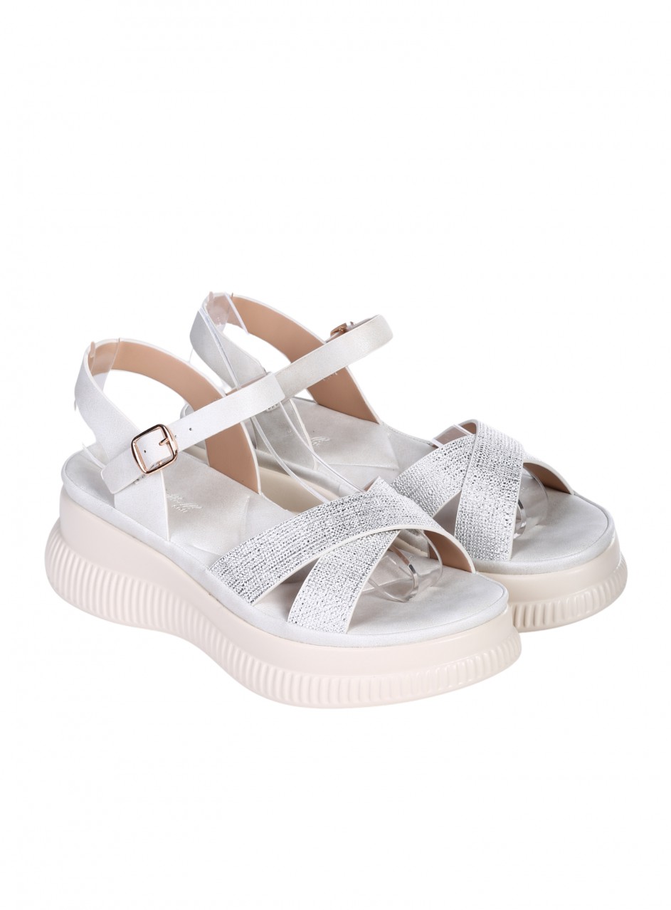 Sandale casual pentru femei, confecționate din piele ecologică. Disponibile în culoarea albă. Partea interioară este confecționată din piele ecologică, cu o talpă confortabilă.
