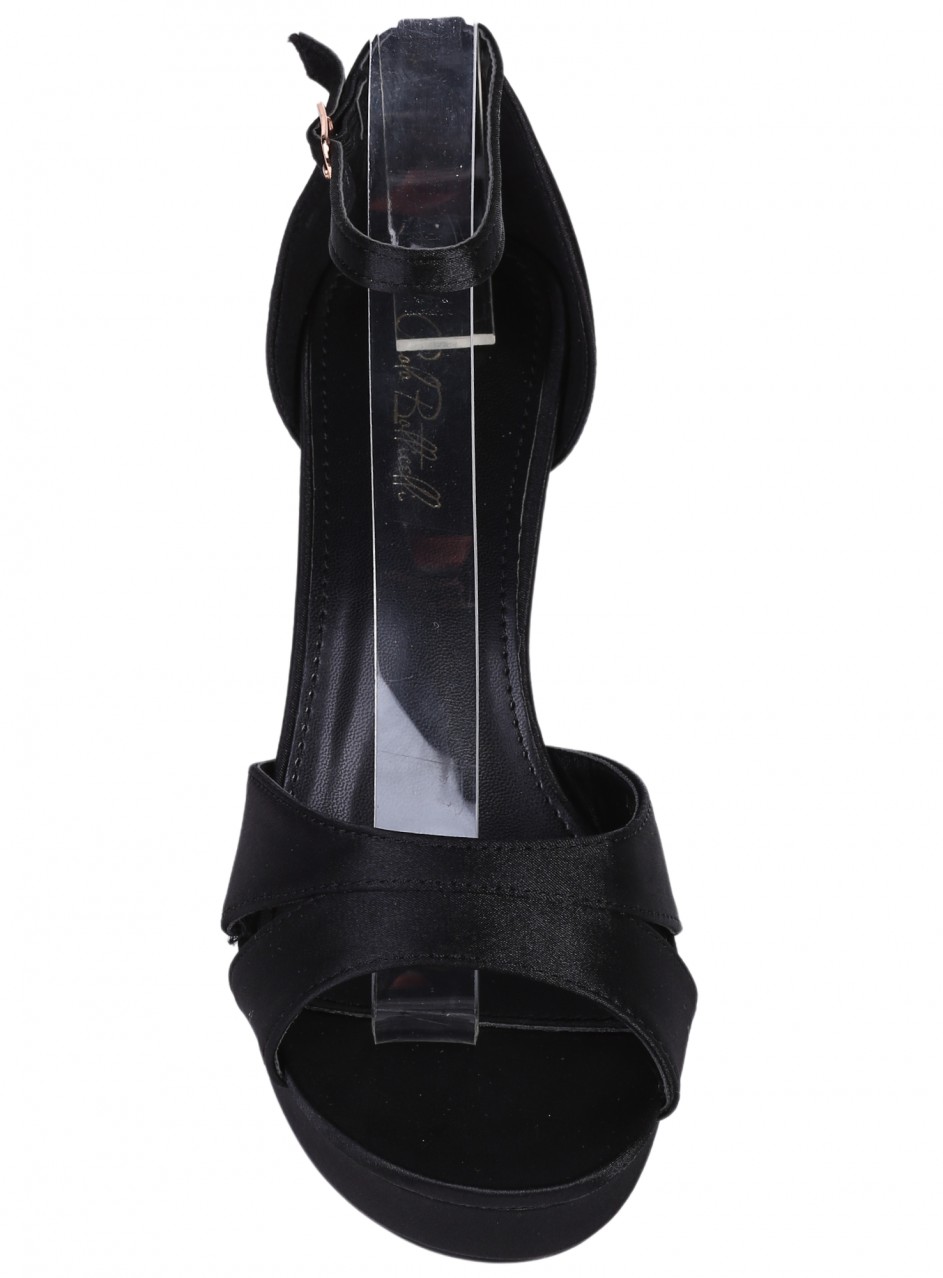 Sandale de dama elegante, cu toc, din material textil. Sunt disponibile pe negru. Interiorul este din piele ecologică.
