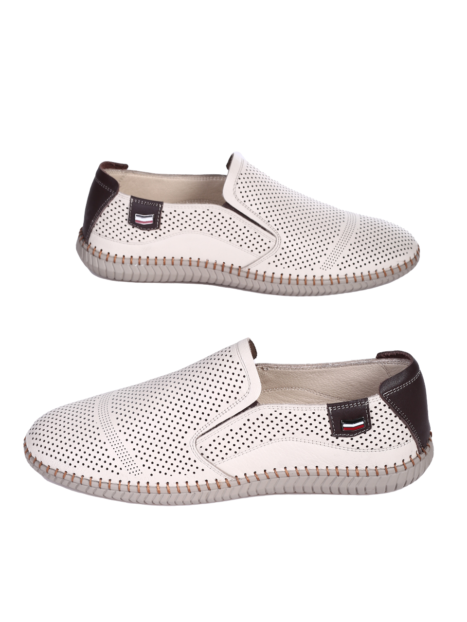 Pantofi casual bărbătești, cu perforații, din piele naturală. Disponibili în culoarea bej, cu ornament metalic decorativ. Partea interioară este confecționată din piele naturală.