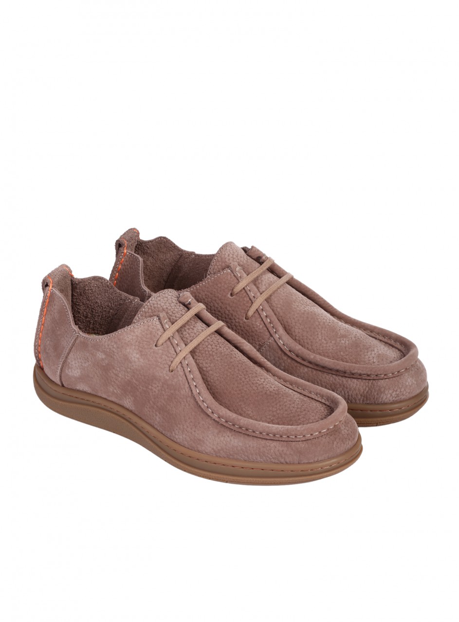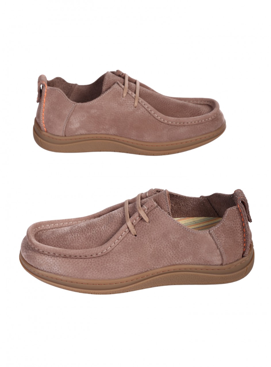 Pantofi bărbătești din nubuc natural. Disponibili în culoarea bej. Partea interioară este confecționată din piele naturală și material textil.